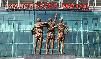 Manchesteru United zastygli w bezruchu Sir Bobby Charlton, Denis Law i George Best. W 40-stą rocznicę zdobycia pierwszego Pucharu Europy przez Manchester, odsłonięto wykonany z brązu monument przedstawiający "United Trio". W ten sposób uhonorowano trzech najlepszych zawodników w historii czerwonych diabłów, z których każdy został uhonorowany nagrodą "Złotej Piłki". Pomniki legendarnych piłkarzy stoją także przed stadionami mniej znanych klubów. Dla przykładu przed stadionem