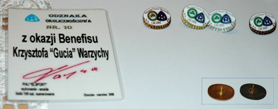 W skład kompletu wchodzą cztery odznaki: złota, złota emalia (numerowana, tylko 100 egzemplarzy + certyfikat z autografem Gucia), srebrna, brązowa (numerowana, tylko 100 egzemplarzy). Odznaki numerowane posiadają numery 10 i 85. Nie były one w sprzedaży, tylko rozdawane gościom benefisu oddzielnie (nie w komplecie), w związku z tym tylko nieliczni posiadają cały komplet.
