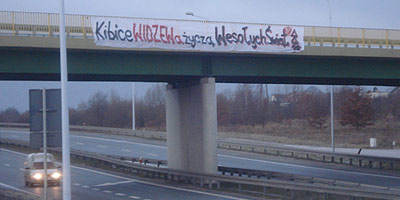 Na ciekawy pomysł wpadli zaprzyjaźnieni z nami sympatycy RTS-u. "Kibice Widzewa życzą Wesołych Świąt" – płótna z taką treścią przyozdobiły podczas Bożego Narodzenia wiadukty, ogrodzenia oraz mury w ponad 20 miastach! Transparenty zawisły nie tylko w Łodzi, ale także w Warszawie, Poznaniu, Lublinie, Pabianicach czy Cieszynie. Co prawda w nietypowych dla Widzewa miastach wysiały zaledwie parę godzin, ale pomysł został podchwycony przez media, które pisząc nadały mu jeszcze większego rozgłosu.