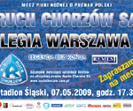 W najbliższy wtorek rozpocznie się sprzedaż biletów na rewanżowy mecz Remes Pucharu Polski pomiędzy Ruchem Chorzów, a Legią Warszawa. Mecz odbędzie się w czwartek 7 maja o godz. 17:30 na Stadionie Śląskim.