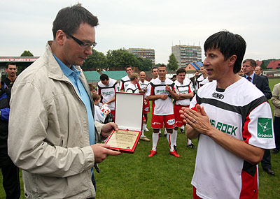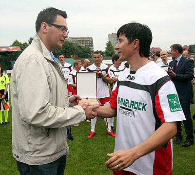Podczas dzisiejszego benefisu kibice Ruchu Chorzów postanowili podziękować Gilewiczowi za jego grę w zespole z Cichej. Specjalną tabliczkę przekazał przedstawiciel sympatyków Ruchu, popularny "Hetman". - Jestem bardzo zaskoczony tym prezentem, bowiem grałem przy Cichej tylko jeden sezon. To wspaniałe wyróżnienie, super, że o mnie pamiętali. Wielkie dzięki! – powiedział wzruszony Gilewicz.