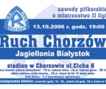 W najbliższy piątek drużyna Ruchu Chorzów zmierzy się przed własną publicznością z trzecim zespołem II ligi, Jagiellonią Białystok. Poniżej przedstawiamy plakat na to spotkanie, który – po uprzednim pobraniu i wydrukowaniu – należy porozwieszać w często odwiedzanych miejscach.