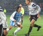 Pierwsza bramka padła po koronkowej akcji. Piotr Ćwielong odegrał piłkę do Grażvydasa Mikulenasa, ten podał na długi słupek do niepilnowanego Tomasza Sokołowskiego i tysiące widzów mogło cieszyć się z prowadzenia.