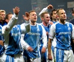 Na posterunku był także jego vis-à-vis z Chorzowa Sebastian Nowak, kiedy to na jego bramkę uderzał Paweł Kryszałowicz. W pierszym kwadransie dwukrotnie swoich sił próbował z dystansu Grzegorz Bonk, jednak w obu przypadkach uderzenia pomocnika "Niebieskich" były niecelne. Świetną okazje zmarnował też Grażvydas Mikulenas w 19. minucie, kiedy to jego strzał z najbliższej odległości zablokował Michael Thwaite. Po tym wybiciu z rzutu rożnego wykonywanym przez Piotra Ćwielonga w polu karnym najwyżej do piłki wyskoczył Grzegorz Baran i precyzyjnym strzałem głową zmusił Pawełka do kapitulacji. Na trybunach zapanowała konsternacja, oprócz rzecz jasna sektora zajmowanego przez kibiców gości, który wręcz eksplodował z radości.