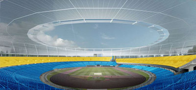 Żółto – niebieskie krzesełka Stadionu Śląskiego według wizualizacji katowickiej Gazety Wyborczej.