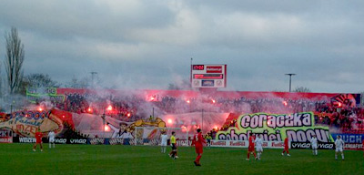 Widzew Łódź Podczas meczu z Motorem Lubin na stadion przy Piłsudskiego nareszcie zawitali kibice gości, którzy mocno mobilizowali się na ten mecz. "Widzewiacy" postanowili zrobić fanom Motoru przedmeczową niespodziankę i w nocy poprzedzającej mecz wybrali się z wycieczką do Lublina, gdzie grafitti "Motorowców" oraz miejsce ich zbiórki przyozdobili napisami sławiącymi Widzew.