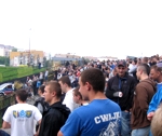 230 kibiców Ruchu Chorzów, a także delegacje ich pozostałych zgód - KS Myszków (24) oraz Jezioraka Iława (4). Łącznie dało to około 300 osób, jednak niektórym nie udało się wejść na stadion. Na płocie zawisła jedna flaga: "19 (E) 68". W dopingu nie zabrakło licznych piosenek fanów "Niebieskich", a także pozdrowień, np. "Wieczna sztama - Myszków Ruch Elana".