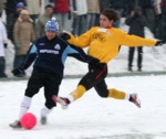 "Niebiescy", mimo bardzo trudnych warunków (przez całe spotkanie padał śnieg), pierwsi rzucili się do ataku. Efektem tego była bramka już w 5. minucie meczu. Marcin Makuch z prawej strony zagrał piłkę wzdłuż pola karnego, Grażvydas Mikulenas sprytnie zostawił ją Tomaszowi Sokołowskiemu, a temu nie pozostało już nic innego, jak umieścić futbolówkę w siatce.