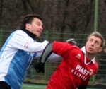 "Piastunki" postawiły wysokie warunki i spotkanie od początku było bardzo wyrównane. Przyjezdni, szczególnie w drugiej połowie uciekali się do gry na pograniczu faulu. Salwę przewinień rozpoczął Banaś, który dwukrotnie powalił na ziemię Piotra Ćwielonga. W między czasie oberwało się Grzegorzowi Baranowi. - Rywal chciał mnie przeskoczyć, ale spadł mi na rękę. Chyba nic poważnego, ale będzie musiał zobaczyć to lekarz - mówił "Baranek". Po chwili Podgórski podciął od tyłu Łudzińskiego, a kilkadziesiąt sekund później Adamski "pomścił" kolegę z drużyny i wszystkim puściły nerwy. Najbardziej Michałowi Pulkowskiemu, który popchnął Adama Kompałę. Sędzia momentalnie nakazał obu piłkarzom opuścić murawę na dwie minuty. - Jestem tego świadomy, że gdybym zrobił tak w meczu ligowym, od razu otrzymałbym czerwoną kartkę. Na pewno to już się więcej nie powtórzy - obiecał "Pulo".