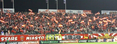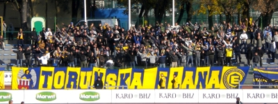 Elana Toruń Na wyjazd do Zielonej Góry wybrało się 104 fanów Elany, w tym 2 osoby z WfcG. Kibice z rożnych powodów na mecz dotarli dopiero w drugiej połowie. Elanowcy wywiesili jedną flagę "19[E]68" i do końca prowadzili bardzo dobry doping. Na boisku zakończyło się remisem 2:2.