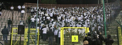 Fani Legii pokazali się na wejściu w białych koszulkach oraz kominiarkach, jednak z powodu ogromnej ilości policji i ochrony "zabawę" ograniczyli do lekkich przepychanek, rzucania pirotechniką, palenia pojedynczych barw oraz słownej wymiany "uprzejmości".