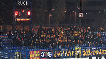 Ostatnią ekipą na stadionie Ruchu w rundzie jesiennej była Jagiellonia Białystok. "Pszczółki", podobnie jak Arka również nie wykorzystali przyznanej puli biletów (dostali 1.000) i przyjechali na Górny Śląsk w