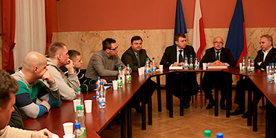 Podczas dzisiejszego spotkania w Urzędzie Miasta kibice Ruchu Chorzów wraz członkiem rady nadzorczej, Januszem Patermanem rozmawiali z prezydentem Andrzejem Kotalą oraz jego zastępcą, Marcinem Michalikiem o możliwym wsparciu Ruchu ze strony miasta.