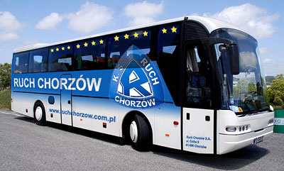 Na wyjazdowy mecz z Legią Warszawa piłkarze Ruchu Chorzów pojadą nowym, własnym autokarem. Firma Grzegorz, która dotąd wynajmowała zespołowi "Niebieskich" własne pojazdy, postanowiła zasponsorować klubowi nowy autokar. – Piłkarze będą mieli wygodne fotele z regulacjami oparcia, składanymi podłokietnikami od strony przejścia, wysuwanymi na boki, regulowane podnóżki, stoliki, klimatyzację z indywidualnie regulowanymi nadmuchami, dodatkowym niezależnym ogrzewaniem – mówi przedstawiciel firmy.