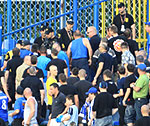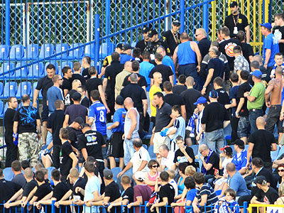Mężczyzna podczas spotkania stał na schodach pomiędzy sektorami, co nie spodobało się służbom porządkowym. Kibica chciała zatrzymać firma ochroniarska, ale w jego obronie stanęli pozostali fani. Po meczu został on zatrzymany przez policję...