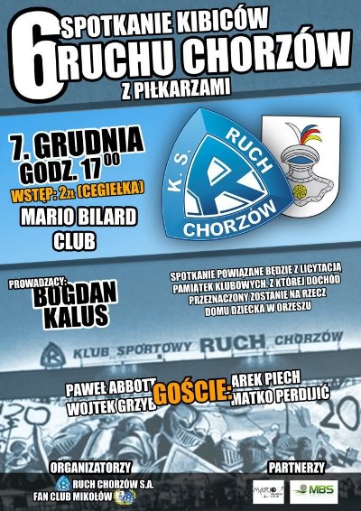 Paweł Abbott, Wojciech Grzyb, Matko Perdijić i Arkadiusz Piech przyjadą do Mikołowa. Niebieski Fan Club już po raz szósty organizuje spotkanie z piłkarzami Ruchu Chorzów.
