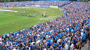 Gdy Ruch awansował do Ekstraklasy, to w ostatniej kolejce ówczesnej II ligi stadion niemalże wypełnił się po brzegi. Wówczas wokół klubu panowała pozytywna atmosfera i chęć uczestnictwa w budowie lepszego jutra. Szybko z zapału kibicowskiego zostaliśmy wyleczeni. Stało się to w momencie, kiedy poznaliśmy cennik na mecze w Ekstraklasie. Na stadionie znowu było więcej pustego niż zapełnionego miejsca i to pomimo awansu do wyższej klasy rozgrywkowej. O dobrej atmosferze wokół klubu i wierze, że będzie już tylko lepiej możemy mówić w sezonie 2008/09, w którym Ruch wywalczył trzecie miejsce. Miło było patrzeć na pełne trybuny w mroźne grudniowe popołudnie, kiedy to Ruch mierzył się z Wisłą. Obecnie najlepszy wynik to 8.500 widzów w meczu z Legią. Mimo, że drużyna gra poprawnie, spora część kibiców przestała wierzyć działaczom i ich obietnicom budowy wielkiego Ruchu. Dobitnie pokazały to hasła wypisane na transparencie podczas ostatniego spotkania z Koroną: "Sprzedocie piłkarzy, kibiców, Waldka - co jeszcze?". Niestety, jeszcze dobitniej pozakazują to puste sektory.