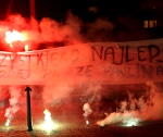 Kibice Korony pojawili się w Chorzowie w 280 osób z trzema flagami: "Korona Kielce", "Scyzory na szlaku" oraz "Małpa".